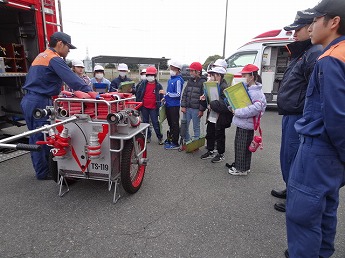 救急車や水槽車など、それぞれの車の役割や装備具などについて、詳しく教えていただきました。
