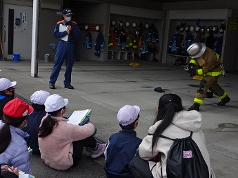消防士さんは、とても早く消防服を着ることができることを実演してくださいました。