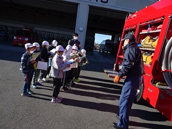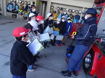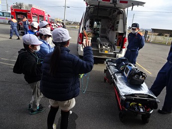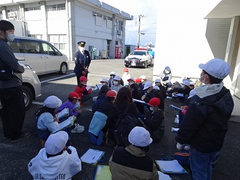 クラスごとに見学させていただき、子どもたちは興味関心が高まるとともに、地域の人々の安全を守る仕事の内容や工夫、努力されていることなどをしっかり学ぶことができました。
