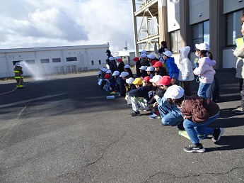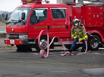 放水の実演も見せてくださいました。放水の種類やすごい勢いと重さで放水されるのがよく分かりました。