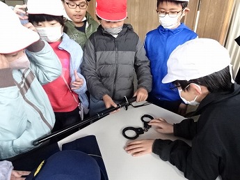 警察の方が身に付けている警棒や手錠などにもふれさせていただきました。