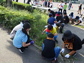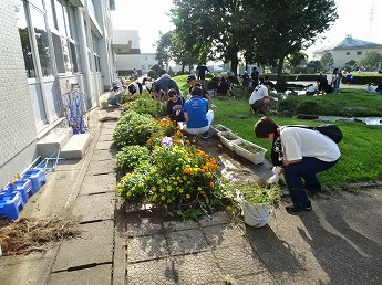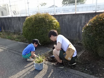 校庭の隅々や学級の花壇の草とり、百年堀の掃除などをしてくださり、あっという間に校庭がきれいになりました。