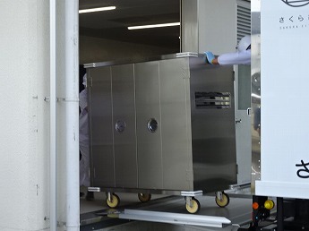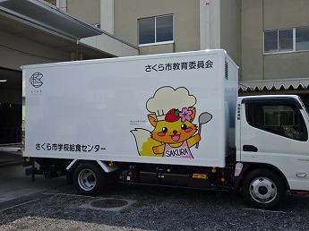 給食センターから給食が運ばれてきました。給食センターからの初給食です。
