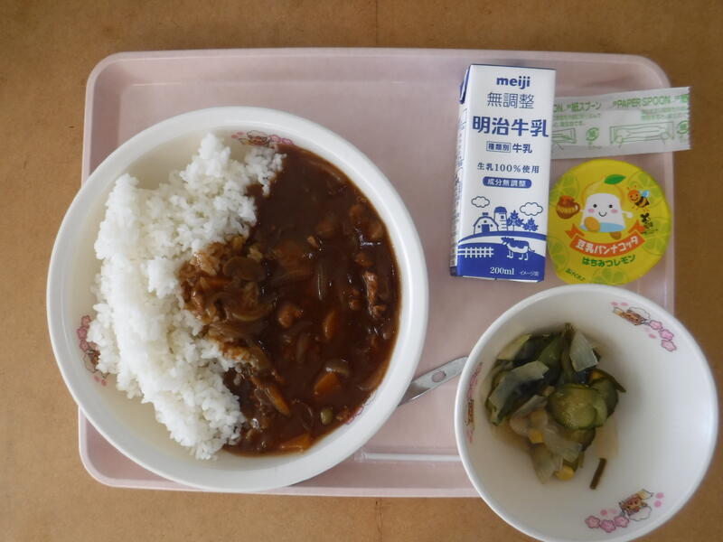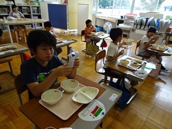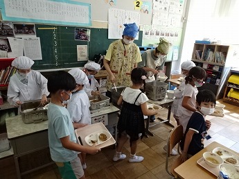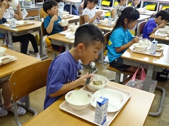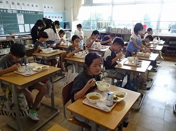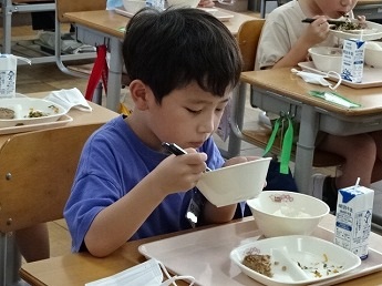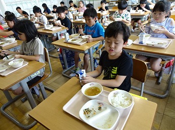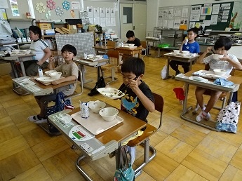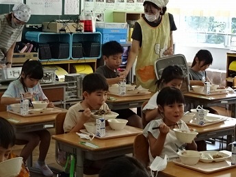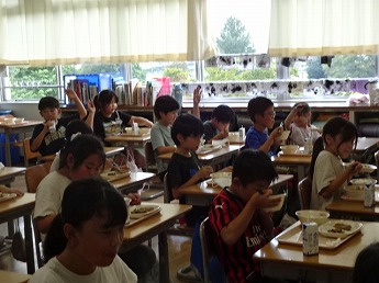 「おいしい!」久しぶりの給食、給食センターからの初給食に大満足の子どもたちでした。