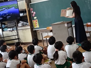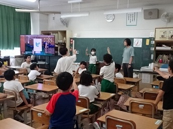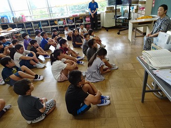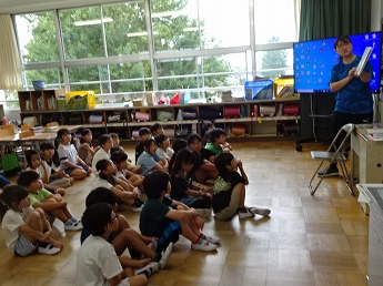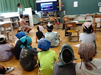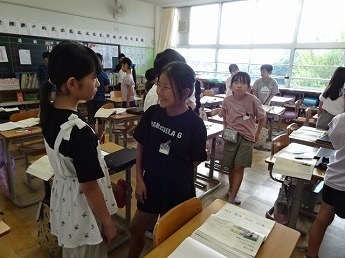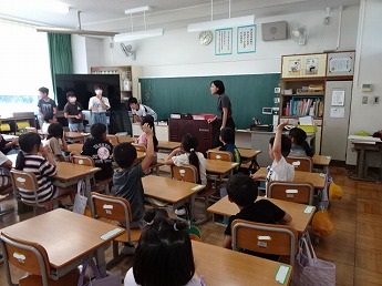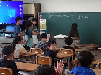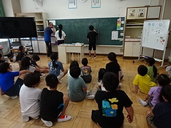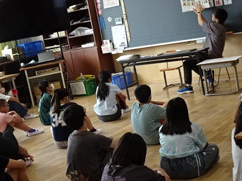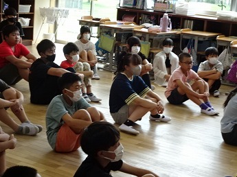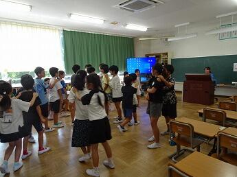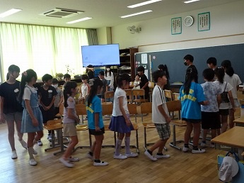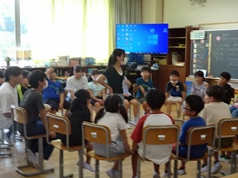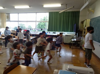 昼休みは、なかよし班で遊びました。外は暑いので、室内で活動することにしました。