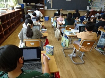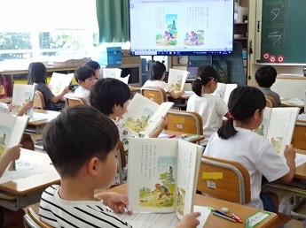 徐々に学校生活のリズムを取り戻してきました。1年生は国語「おむすびころりん」を音読したり、算数では、種類ごとに「わかりやすくせいりすること」を学習したりしました。