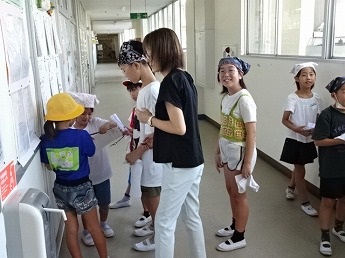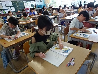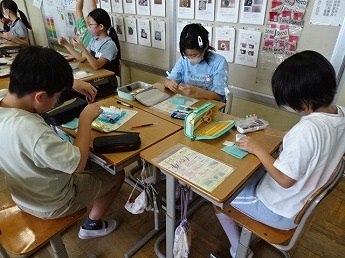 5年生は図工で楽しかった思い出を絵画に表しました。また、「夏」らしいものや様子を文章に書きました。