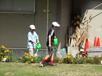 休み時間には、花壇のお花に水をあげる優しい姿やウサギの部屋を丁寧にきれいにしているすてきな姿がありました。
