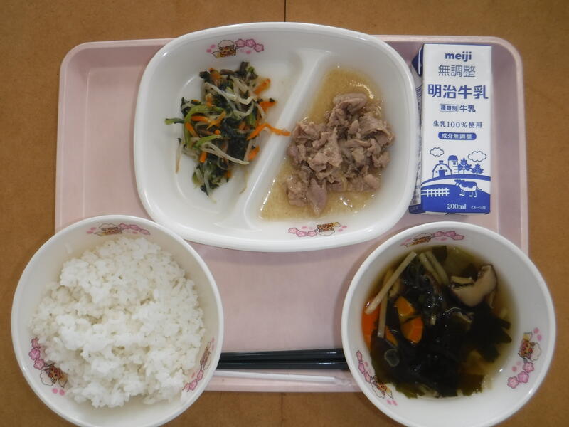 新しい給食キャラクター「さくらこ」の食器で、楽しみな給食の時間の再開です。