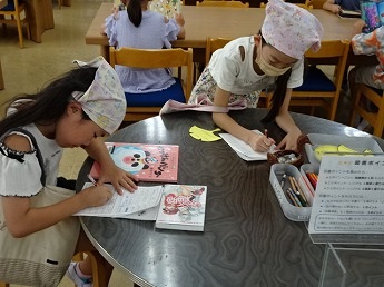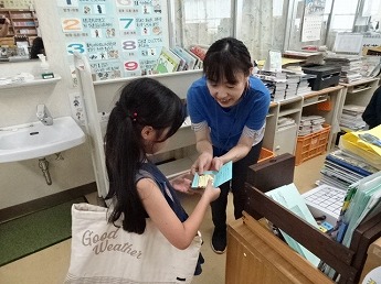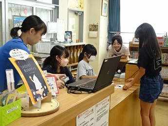 図書委員は、休み時間の貸し出しを手際よく進めています。
