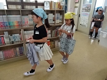 「絵本バック」を持って、今日は何の本を借りようかと、楽しみながら本を選んでいます。