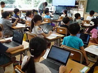 どの学年も調べ学習で活用したり、報告文を作成したり、記録の写真を撮ったり、プレゼンテーションしたり、学校生活の様々な場面で効果的に活用しています。