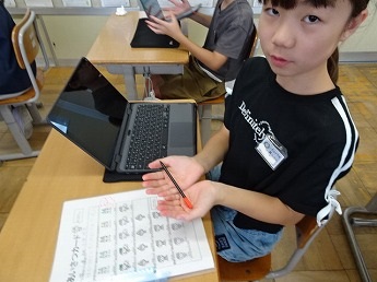 今月から、子どもたちは新しいタブレットを使用することとなりました。新タブレット端末には、「タッチペン」がついています。なくさないように、便利に、丁寧に使っています。