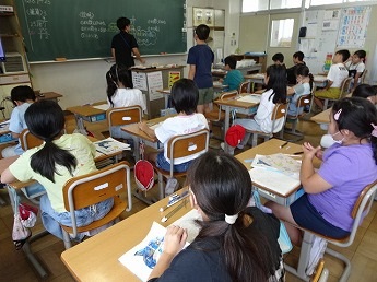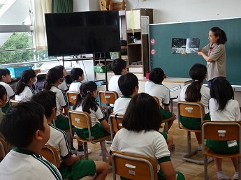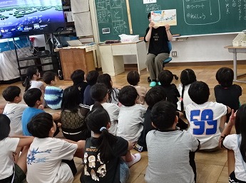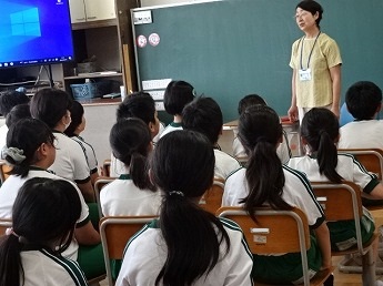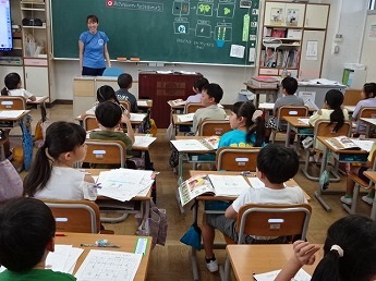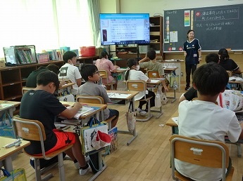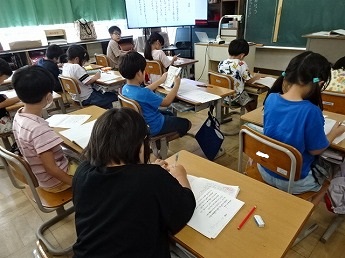 2年生は国語「書いたら、見直そう」の学習で、長音、促音、拗音などの表記、助詞の使い方、句読点の打ち方などが正しく書かれているか、例文を基に考えました。