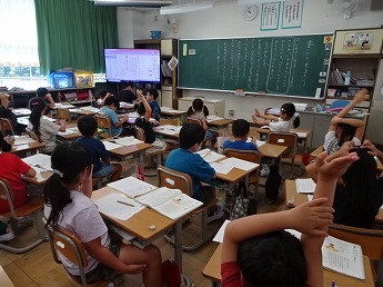 4年生は算数で2けたで割る筆算の仕方を、自分で考え、友達と伝え合い、みんなで話し合い、考えを深めました。