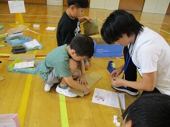 2年生は、生活科の「うごく うごく わたしの おもちゃ」の学習を学年全体で