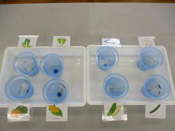 理科支援員の先生が、カボチャやアサガオ等、8種類の花粉を用意してくれました。