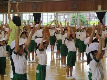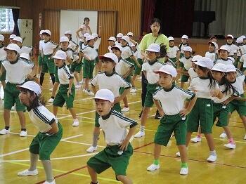 1年生は、運動会に向けて、ラジオ体操やダンスの練習をがんばっていました。