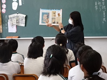 6年生は、図工で水の流れのように、ガラスが溶けて流れる様子を想像しながら下絵を作成しました。社会では鎌倉幕府と元との戦いについて学習しました。