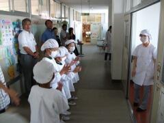児童は、普段通りの給食でしたが、身支度を整えスムースに手際よく準備し、楽しく会食できていました。