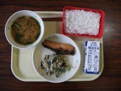 ご飯 牛乳 さけバターしょうゆ漬け 豆入りツナサラダ ニラのみそ汁