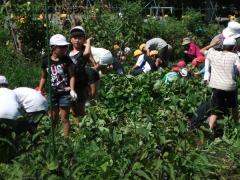 夏休み中の植物の生長はものすごいです。1年生の身長くらいまでのびてしまいました。各学年ごとに分担して校庭を除草し、終わった学年から農園の除草をしていただきました。たいへんきれいになりました。お世話になりました。