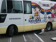 飛び出し注意などの基本的事項を確認した後、ダミー人形を使って、大型車の内輪差巻き込み事故の仕組みを見せていただきました。