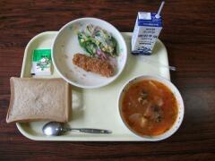 コッペパン 牛乳 スラッピージョー ごぼうサラダ コーンシチュー パイナップル