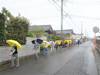 【3年生の社会科「学校の周りの様子」の校外学習】3年生の社会科では、まずは学校の周りの様子から調べていきます。今日は、小雨の中でしたが、1クラスで実施しました。学校の西側の様子が分かりました。