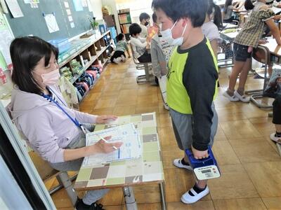 【2年生】2枚目の写真は、体力テストの握力の測定をしている様子です。1年生の時にも実施しているので、スムーズに実施していました。学習にも、運動にも集中しています。