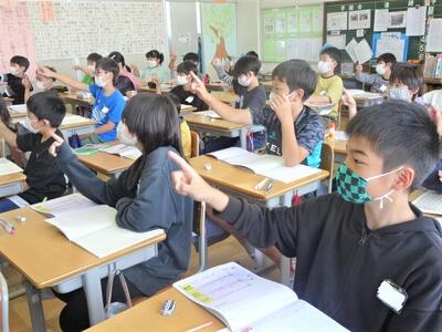【4年生】4年生も、いつも意欲満々です。挙手の仕方も手本のようです。総合的な学習の時間には、先日行ってきた「なす高原自然の家」への宿泊学習に関するまとめが順調に進んでいます。