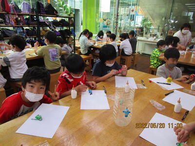 午後の活動は、フクロウの絵付けです。下絵を描き、色をつけ、オリジナルのフクロウが出来上がりました。