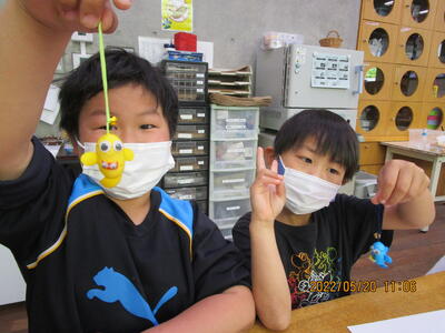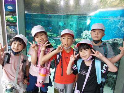 20日(金)に2年生の遠足がありました。2年生の行き先は、なかがわ水遊園です。水遊園では、じゃこのモンスターを見つけたり、繭でキャラクターを作ったりする活動も行いました。もちろんメインは、淡水魚の水族館です。