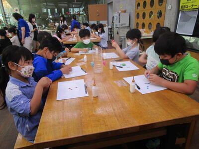 【5年生】1枚目の写真は、図画工作の作品を作っている様子です。箱の中に自分が想像した世界を作り、側面に開けた穴からのぞいて見るという作品です。子どもたちは、錐やカッターなども使って、細かな作業を行っていました。
