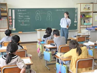 【3年生】3年生では、少人数指導が始まりました。3クラスの子どもたちを5つのグループに分けて、5人の先生で指導を行います。すると1クラスの人数がぐんと減って、授業の効率が高まるのです。子どもたちも、いつもと違う雰囲気で集中しています。