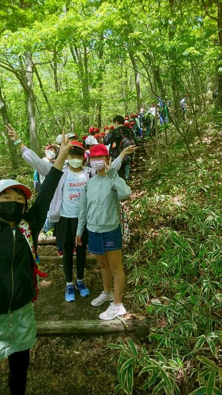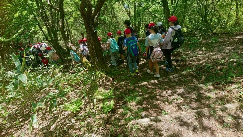 気持ちのよい新緑に包まれながら、矢隠岩までハイキングにいきました。急な斜面も所々ありましたが、助け合い、励まし合いなから、みんな元気に歩きました。