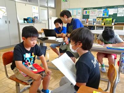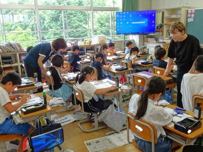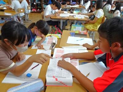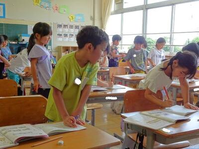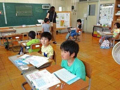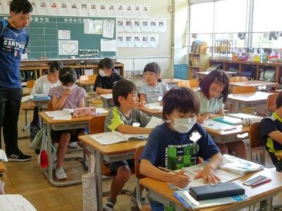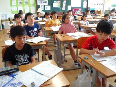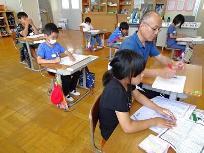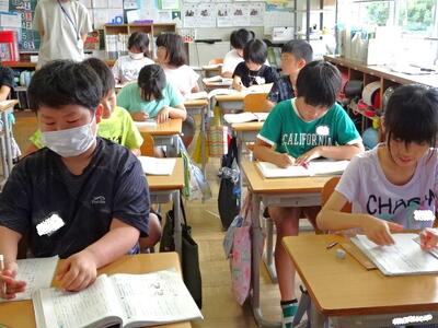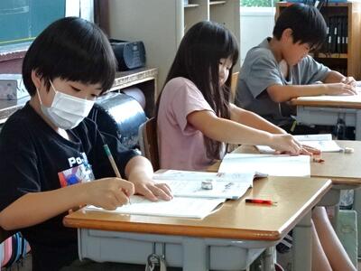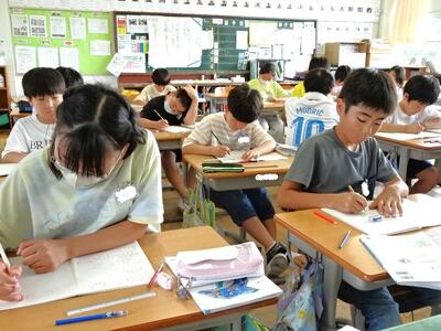 【4・5・6・7組】とても真剣に学習しています。いくつかの学年でクラスが構成されていますから、クラスメートが校外学習や交流学習でいないときがあり、たまにマンツーマンで学習することもあります。