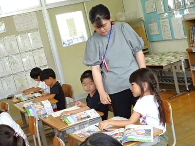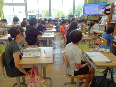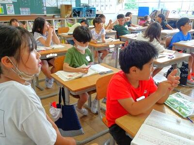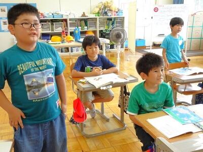 【4・5・6・7組】1枚目の写真は、国語の時間の様子です。「スイミー」の1の場面を音読している様子です。とっても上手に読むことができました。