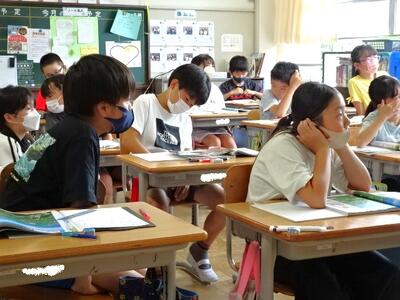 【6年生】1枚目の写真は、理科の「植物のつくりとはたらき」の学習の様子です。いよいよこの単元の学習もまとめです。今日は、まとめの問題にみんなで取り組みました。
