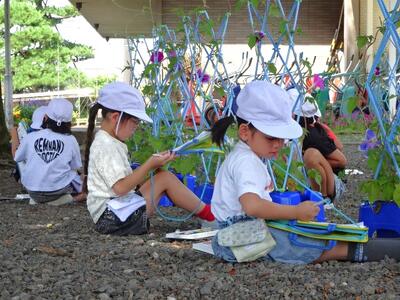 【4・5・6・7組】野菜や雨の日でも確実に大きくなっています。毎日の観察が大切ですね。