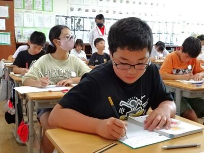 【5年生】1枚目と2枚目の写真は、国語の「日常を十七音で」の学習の様子です。いよいよできあがった俳句の作品を、一人一人清書の紙に書き込んでいきます。どんな作品ができたか楽しみです。
