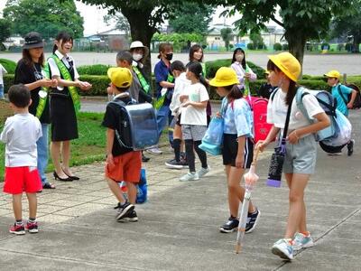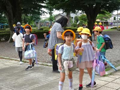 【1年生】いよいよ明日は生活科の学習で「ゆうゆうパーク」に行く日です。グループごとに集合する機会があるので、時間があるときに繰り返し練習を行っています。明日、晴れますように。