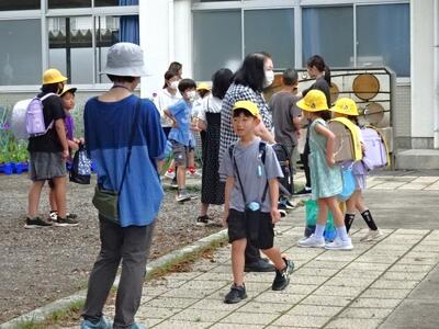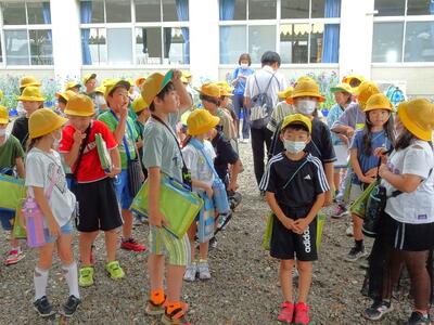 【2年生】2年生の生活科の学習「まちたんけん」も近づいてきています。1枚目の写真は、まちたんけんのグループや行き先を確認した後に、注意事項を聞いている様子です。