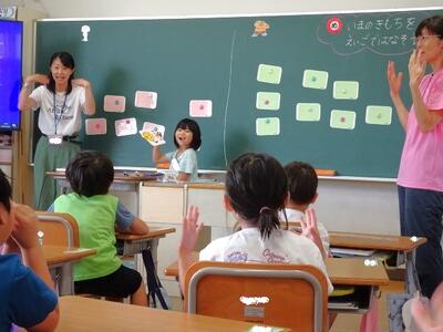 【1年生】1枚目と2枚目の写真は、英語活動の様子です。今日は「今の気持ちを英語で話そう」というめあてで、気持ちに関する英単語の言葉あわせゲームを行いました。日ぶりや身振りもあわせて発音しています。