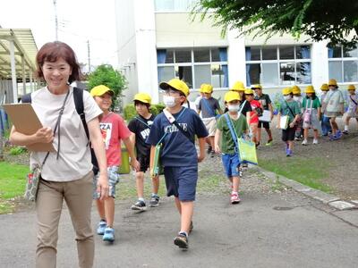 【2年生】今日は、2年生が楽しみにしていた生活科の「地域探検」の日です。この日のために集まってくださった支援ボランティアの方々と一緒に、計画した見学場所に向かいました。地域の皆様、大変お世話になりました。