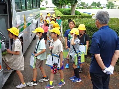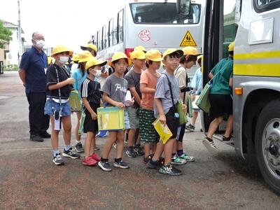 【1年生】今日は、1年生が待ちに待った校外学習です。生活科の「みんなのこうえんであそぼう」の学習で、「ゆうゆうパーク」に行ってきます。元気いっぱいで出発しました。活動の様子は、後日お伝えしますね。