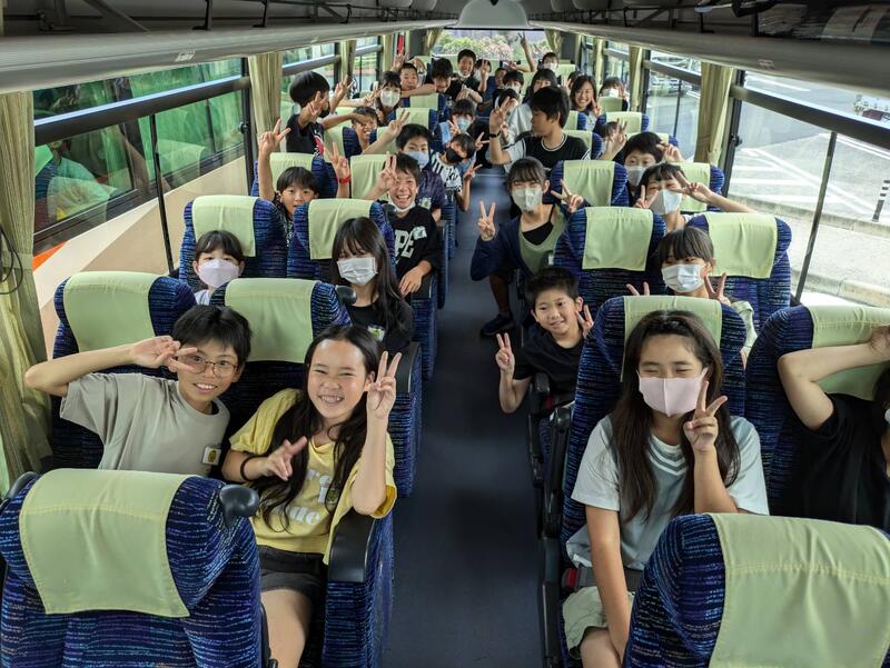 【6年生】今日は、社会科の学習の一環で、侍塚古墳や風土記の丘資料館を見学する校外学習にいきました。写真は、出発前の様子です。本物を見て、大きさを体感してきてほしいですね。