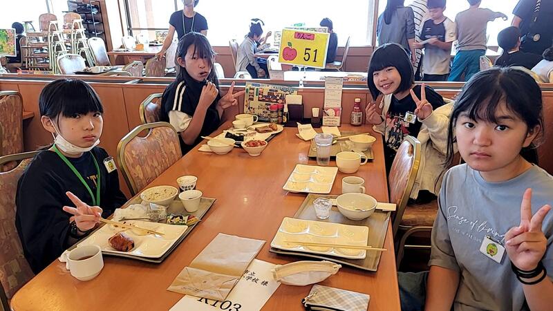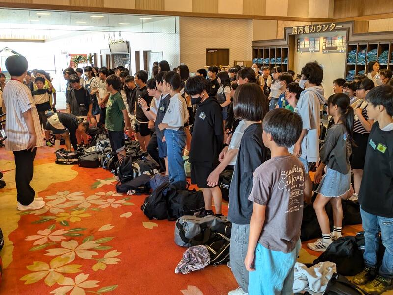 おはようございます。修学旅行の2日目が始まりました。朝食を食べて退館式をして、慌ただしく出発しました。