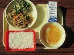 ご飯 牛乳 豚ニラ炒め ほうれん草ゴマ和え かんぴょうかき玉汁