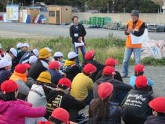 昼食後、津波被害を受けた平薄磯地区元豊間中学校跡に行き、語り部の方から震災当時の様子を聞かせていただきました。